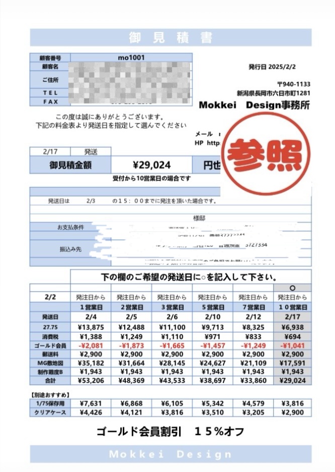 (この時のMG模型は間取りあり模型を作っていた場合同物件割引で10%オフ